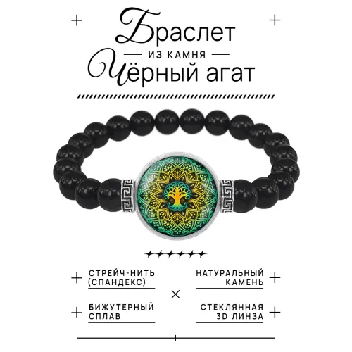 Браслет из черного агата Мандала Помощи и защиты BSBA-134