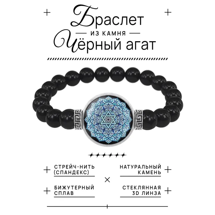 Браслет из черного агата Мандала Света BSBA-142