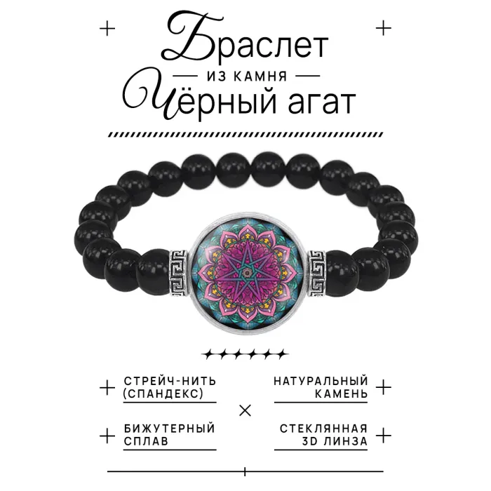 Браслет из черного агата Мандала Творчества BSBA-149