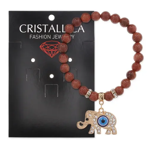 Стрейч-браслет из коллекции Cristallica с бусинами в виде слона, изготовленный из коричневого авантюрина.