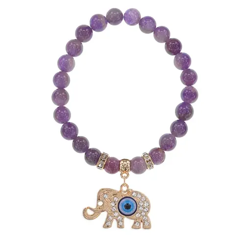 Браслет из натурального аметиста в форме стретч с бусинами диаметром 8 мм и подвеской в виде слона.