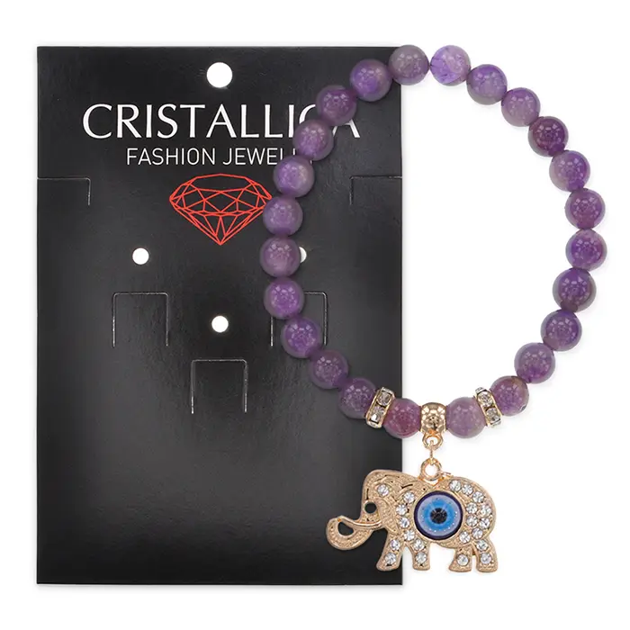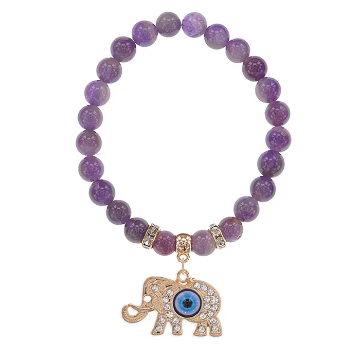 Браслет Слон (мудрость, сила, долголетие) нат.камень Аметист 8мм BS-CR-0213