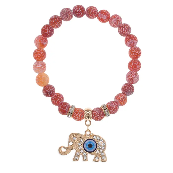 Браслет Слон (мудрость, сила, долголетие) нат.камень Африканский агат 8мм BS-CR-0214