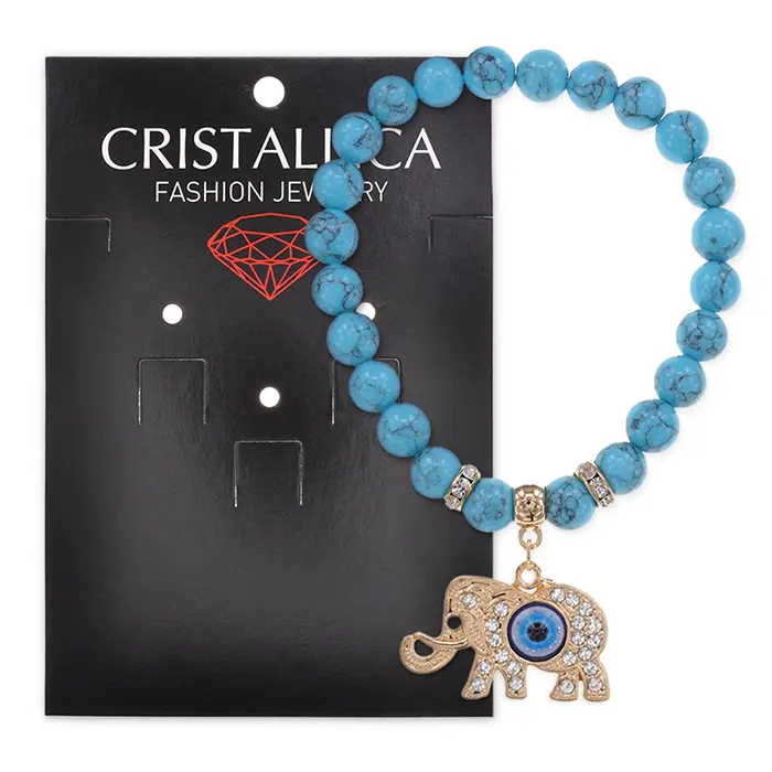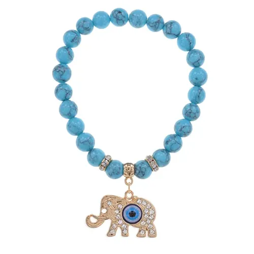 Стрейч-браслет с подвеской в виде слона из синтетического камня бирюза.