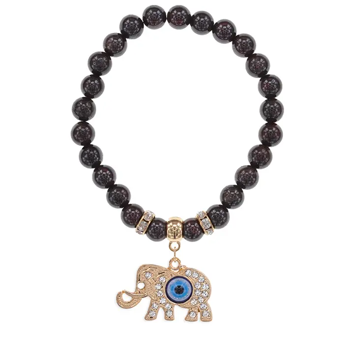Браслет Слон (мудрость, сила, долголетие) нат.камень Гранат 8мм BS-CR-0216