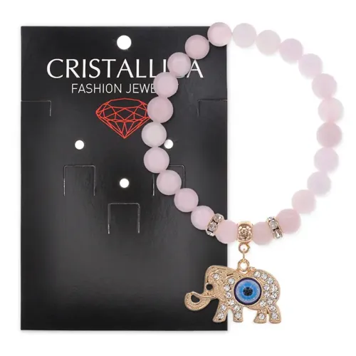 Браслет Слон (мудрость, сила, долголетие) нат.камень Розовый кварц 8мм BS-CR-0225