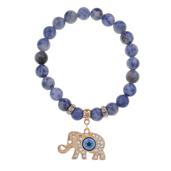 Браслет Слон (мудрость, сила, долголетие) нат.камень Содалит 8мм BS-CR-0228
