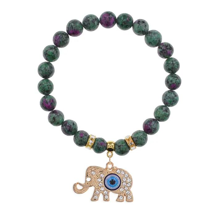 Браслет Слон (мудрость, сила, долголетие) синт.камень Цоизит 8мм BS-CR-0232