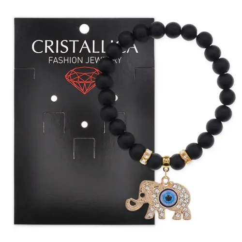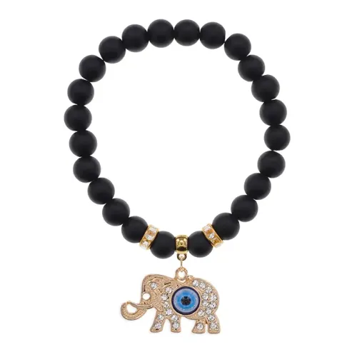 Браслет из синтетического шунгита с подвеской в виде слона.