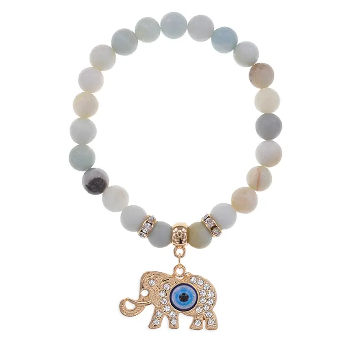 Стрейч-браслет из натурального амазонита с подвеской в виде слона.