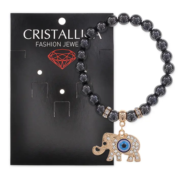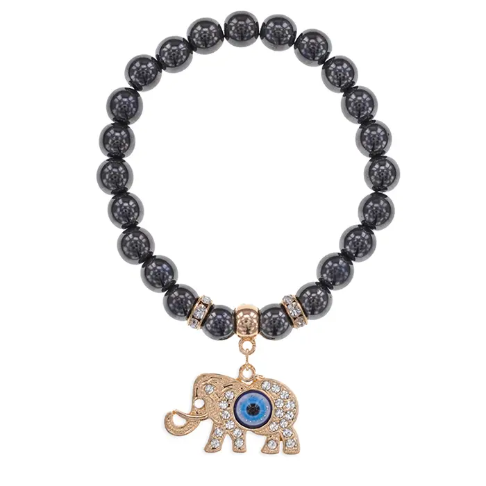 Браслет Слон (мудрость, сила, долголетие) синт.камень Гематит (не магнит.) 8мм BS-CR-0238