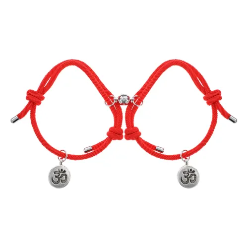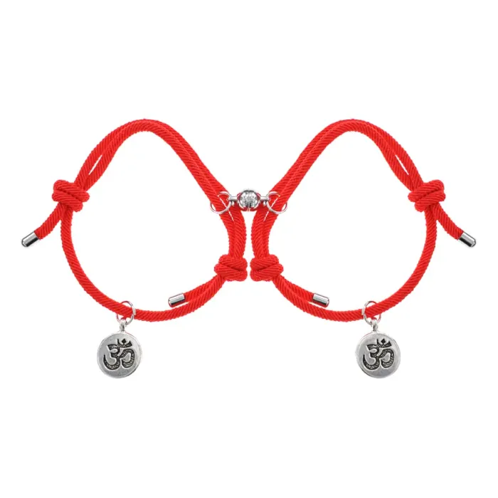 Парные браслеты Ом из металла с покрытием под серебро и текстиля, регулируемые по обхвату запястья.
