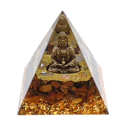 Сувенирная фигурка в виде пирамиды с изображением Будды, выполнена из эпоксидной смолы.