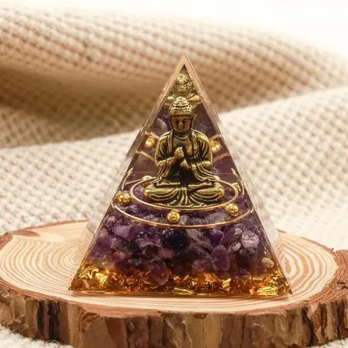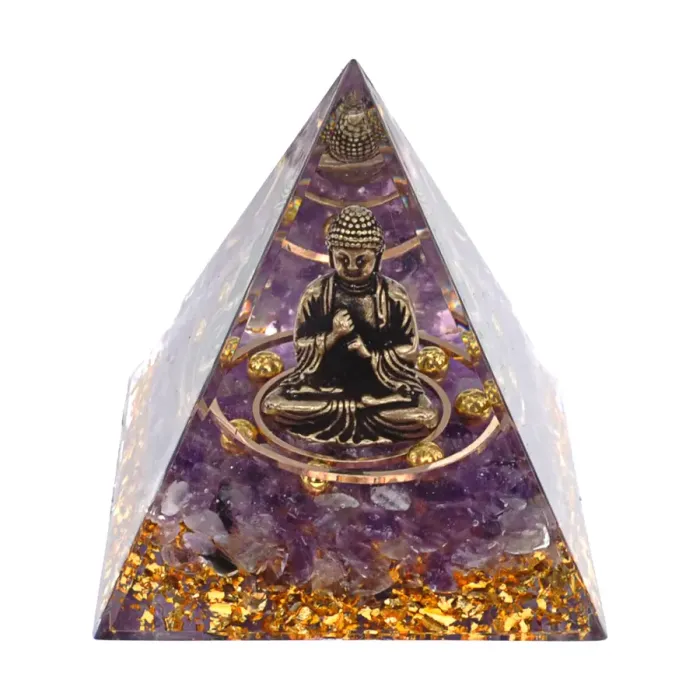 Сувенирная фигурка в виде пирамиды с изображением Будды, изготовленная из эпоксидной смолы.