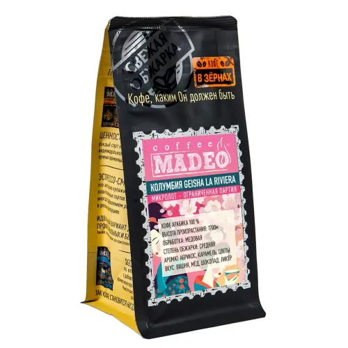 Плантационный микролот арабики от Madeo, выращенный в Колумбии на высоте 1700 метров. Средняя обжарка раскрывает насыщенный вкус с нотами вишни, мёда и сладкого ликёра, дополненный цветочным ароматом с оттенками абрикоса. Сбалансированная кислотность и тело средней плотности оставляют долгое послевкусие.