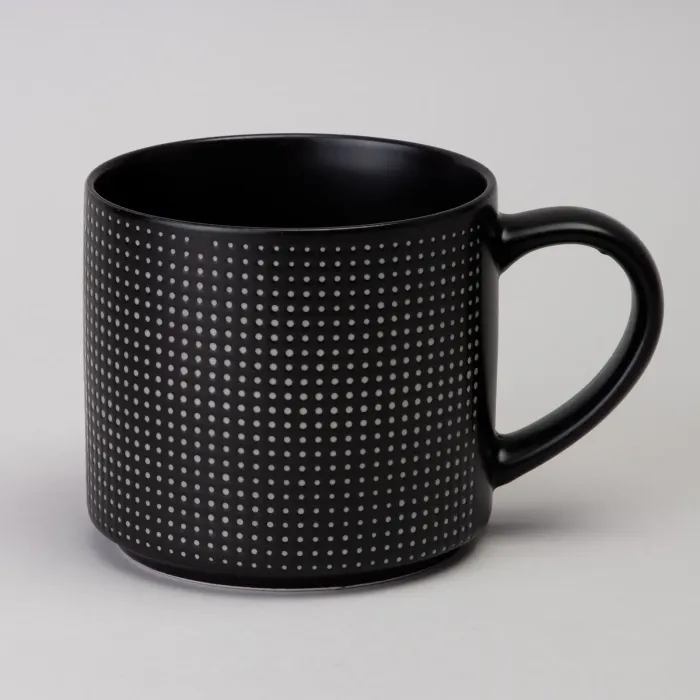 Кружку можно использовать для сервировки кофе, чая или других напитков дома или в офисе. Лаконичный дизайн и чёрный цвет позволяют сочетать её с посудой различных стилей.