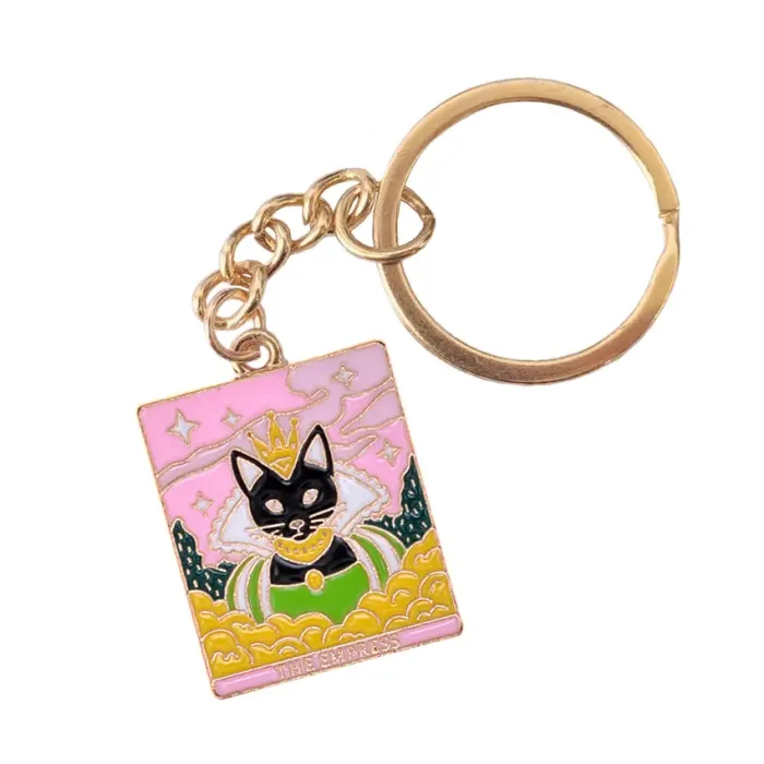 Брелок для ключей из бижутерного сплава в виде карты таро «Императрица» с изображением чёрной кошки.