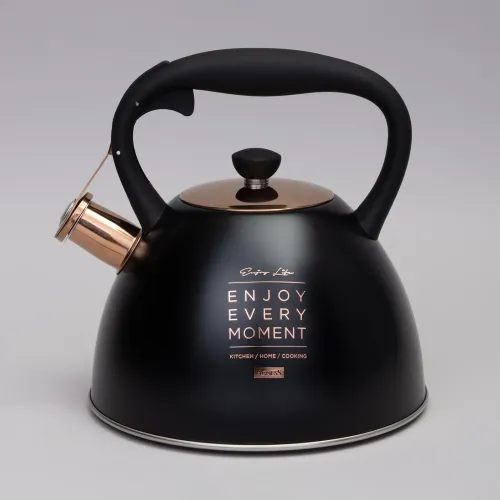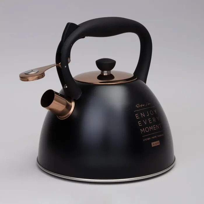 Корпус выполнен из нержавеющей стали. Дно имеет капсульную конструкцию с алюминиевой прослойкой для равномерного распределения тепла. Встроенный свисток подаёт звуковой сигнал при закипании, а клапан на ручке облегчает процесс наливания. Поверхность имеет жаропрочное покрытие.