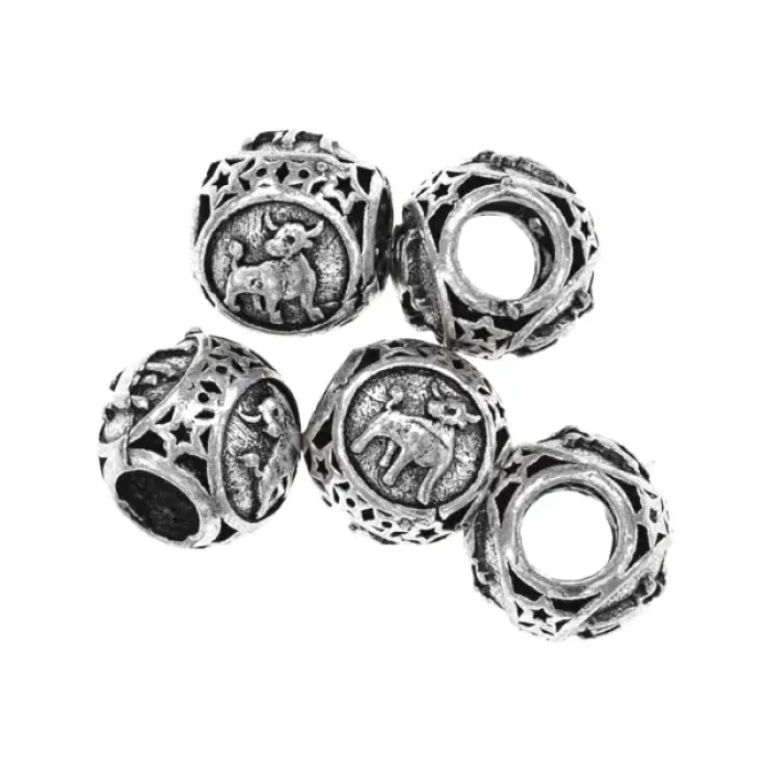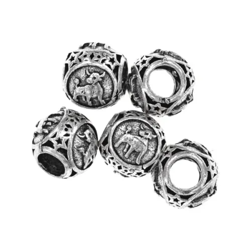 Бусина для евробраслета в виде знака зодиака Телец, выполнена из металла с покрытием под серебро.