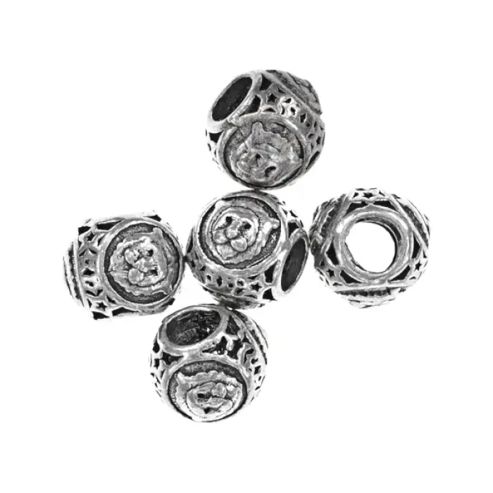 Бусина для евробраслета с символом знака зодиака Лев. Изготовлена из металла с покрытием под серебро.