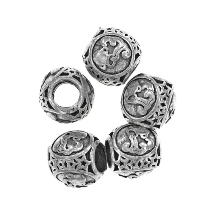 Бусина для евробраслета с символом знака зодиака Водолей, выполнена из металла с покрытием под серебро.