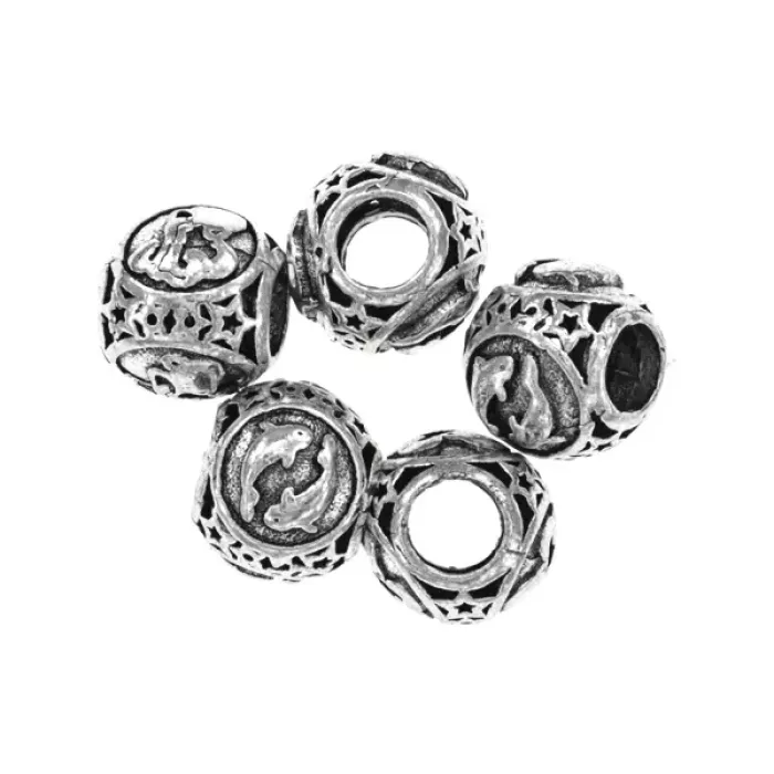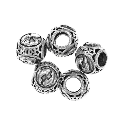 Бусина для евробраслета с астрологическим дизайном «Знаки Зодиака Рыбы». Материал — металл с покрытием под серебро.