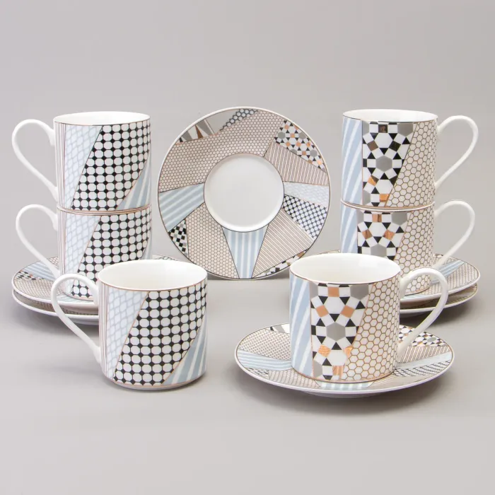 Фарфоровый чайный набор на 6 персон из коллекции Top Style бренда Lefard предназначен для сервировки чая. В комплект входит 12 предметов, изготовленных из высококачественного фарфора. Дизайн сочетает геометрический принт и современные цветовые решения.
