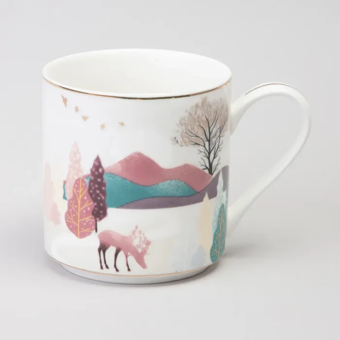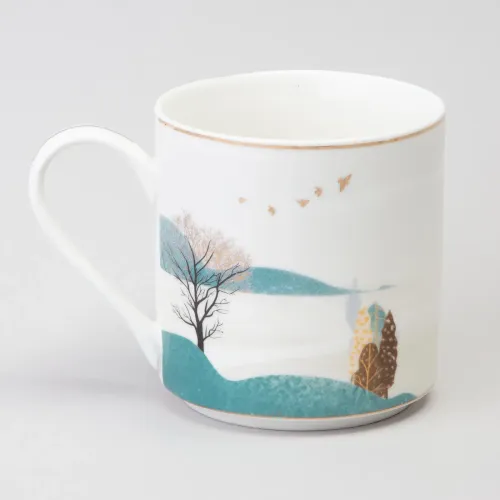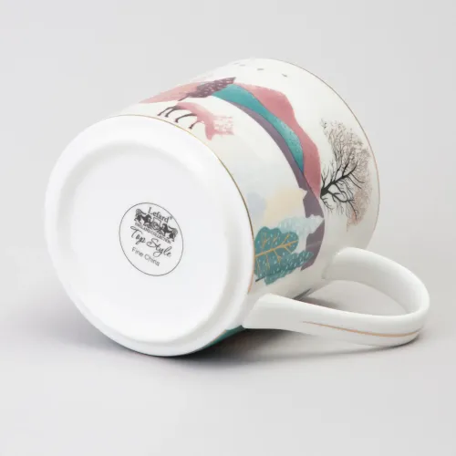 Для сохранения декоративного покрытия с золотыми элементами предпочтительна бережная ручная мойка. Дизайн с горным пейзажем позволяет использовать кружку как в повседневном, так и в праздничном сервире. Она сочетается с посудой в современном или классическом стиле.
