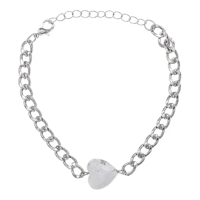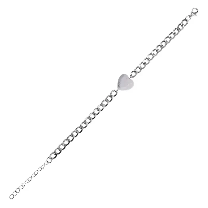 Браслет-цепь из нержавеющей стали с подвеской в форме сердца из натурального камня кахолонг.