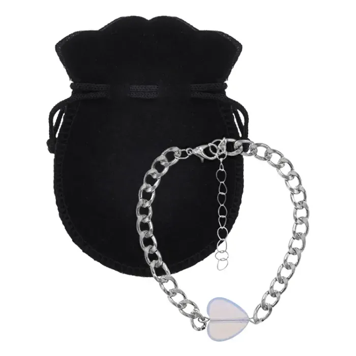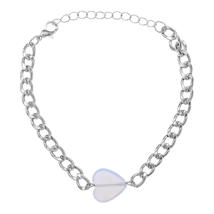 Браслет-цепь из нержавеющей стали с подвеской в форме сердца из синтетического лунного камня.