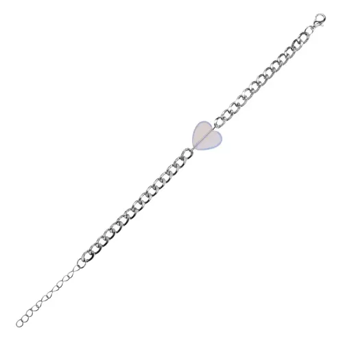 Браслет цепь нерж.сталь с Сердцем из синт.камня Лунный камень BSS-04