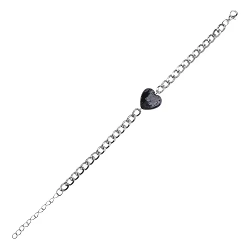 Браслет цепь нерж.сталь с Сердцем из нат.камня Снежный обсидиан BSS-09