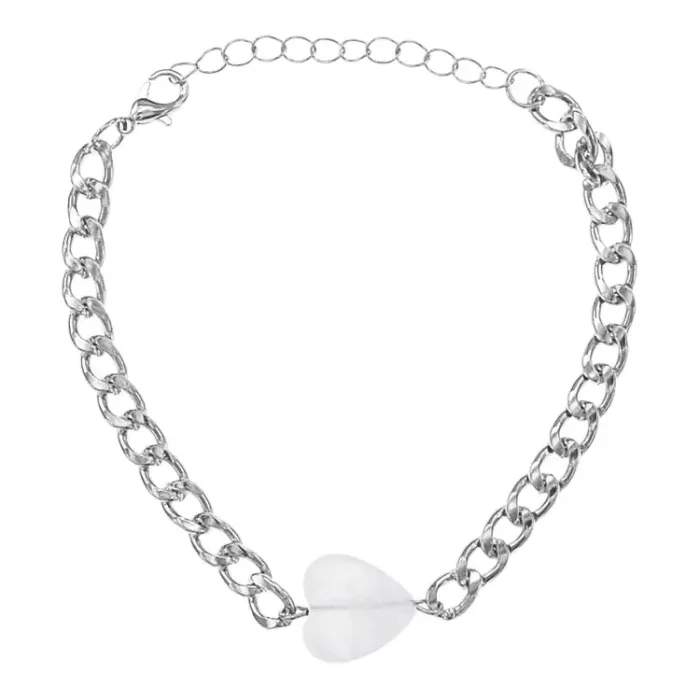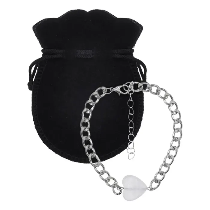 Браслет-цепь из нержавеющей стали с подвеской в форме сердца из натурального горного хрусталя.