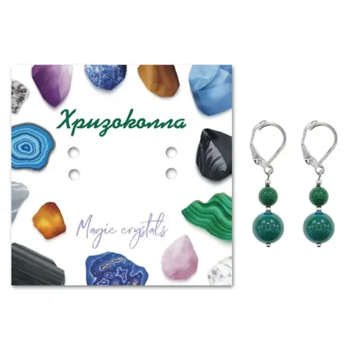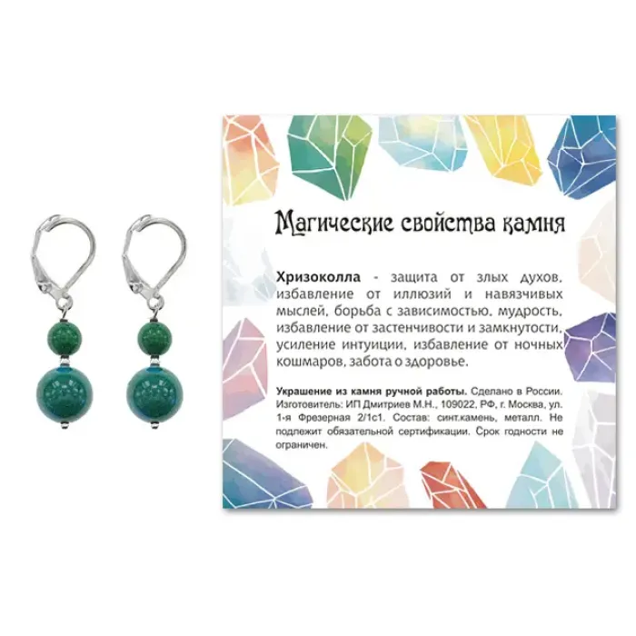 Материал и изготовление: Синтетический камень хризоколла, бижутерный сплав с покрытием под серебро.