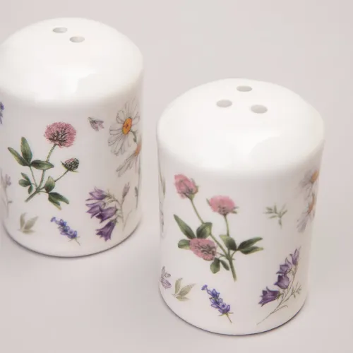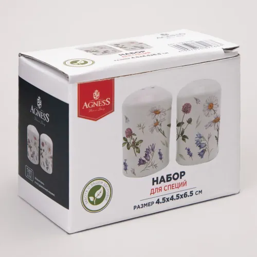 Набор для специй Flower Story от Agness предназначен для хранения и подачи сыпучих приправ. Изделия выполнены из доломитовой керамики и украшены цветочным дизайном.
