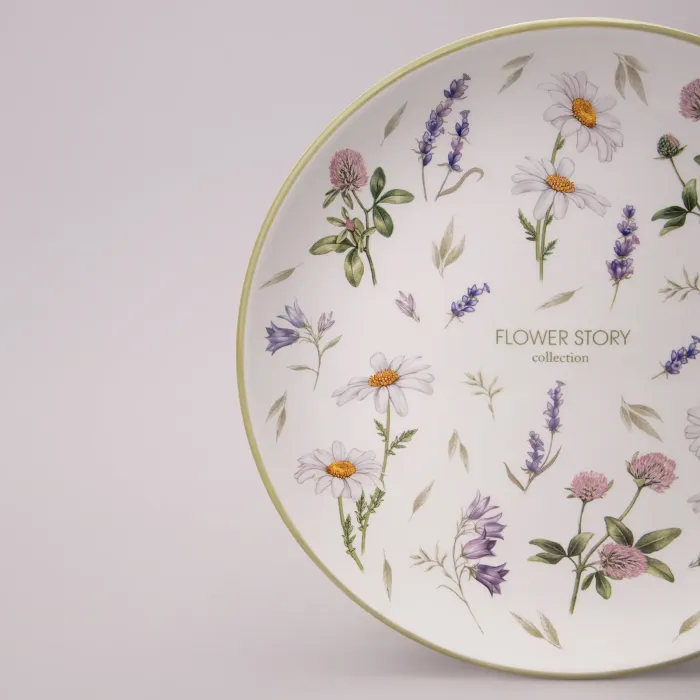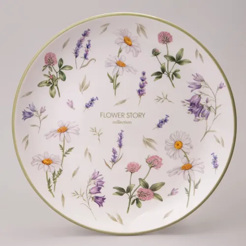Обеденная тарелка Flower Story от Agness предназначена для сервировки вторых блюд. Изделие выполнено из доломитовой керамики и украшено цветочным декором в светлых тонах.