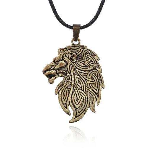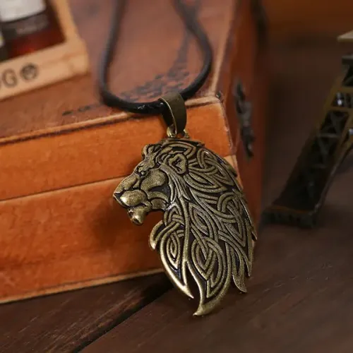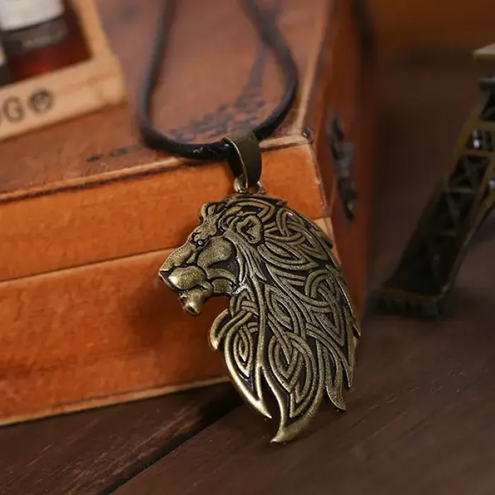 Амулет «Лев» из металла с покрытием под золото на регулируемом шнурке.