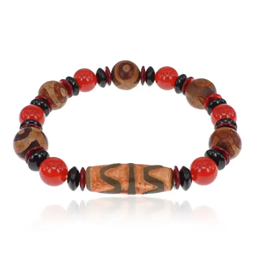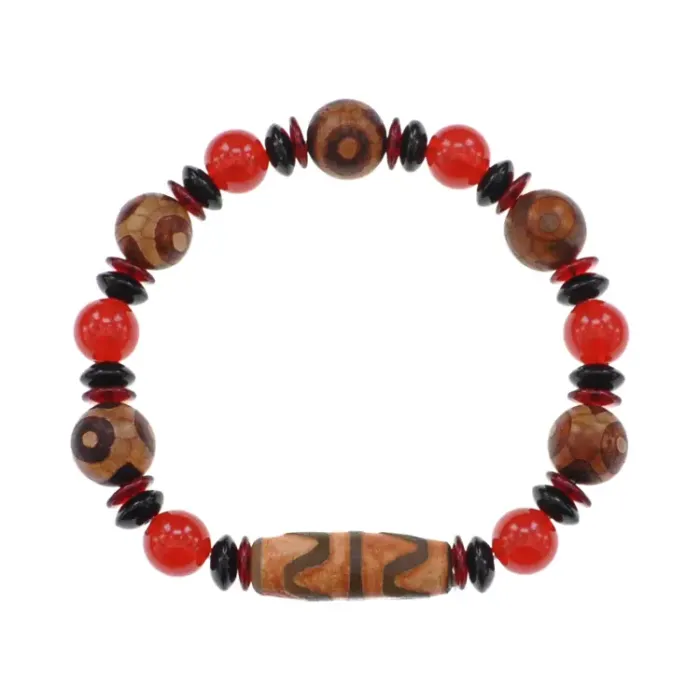 Браслет с бусинами Дзи 3 глаза и Двойной клык тигра, натуральный агат BSDZ-039