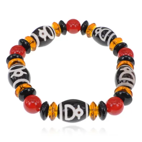 Браслет с бусинами Дзи Кубера, натуральный агат BSDZ-041