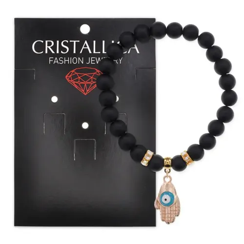 Стрейч-браслет из коллекции Cristallica с подвеской в виде ладони и бусинами из шунгита.