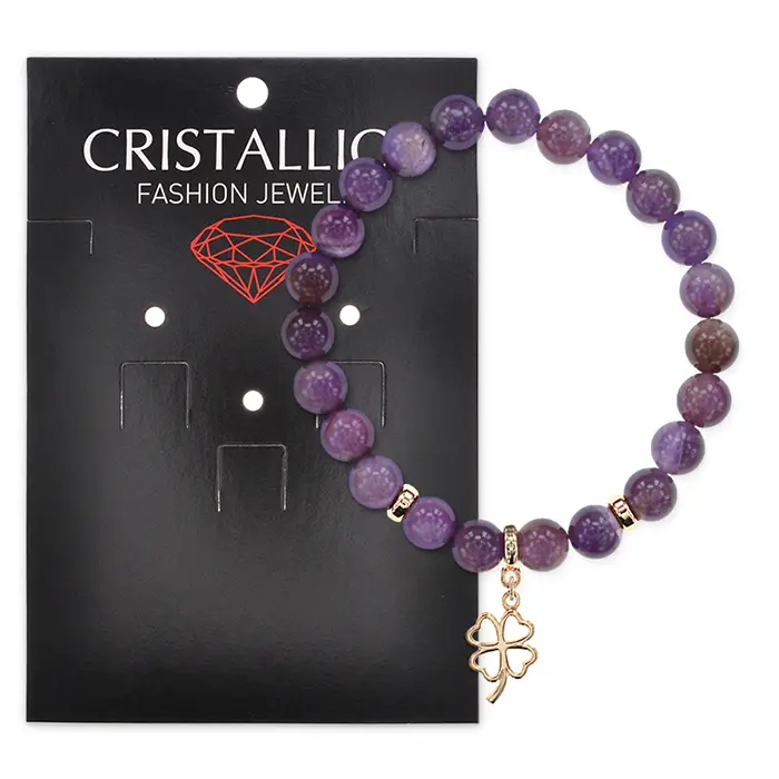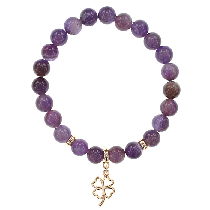 Браслет Клевер (удача, везение) нат.камень Аметист 8мм BS-CR-0723