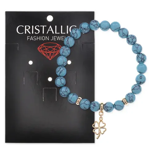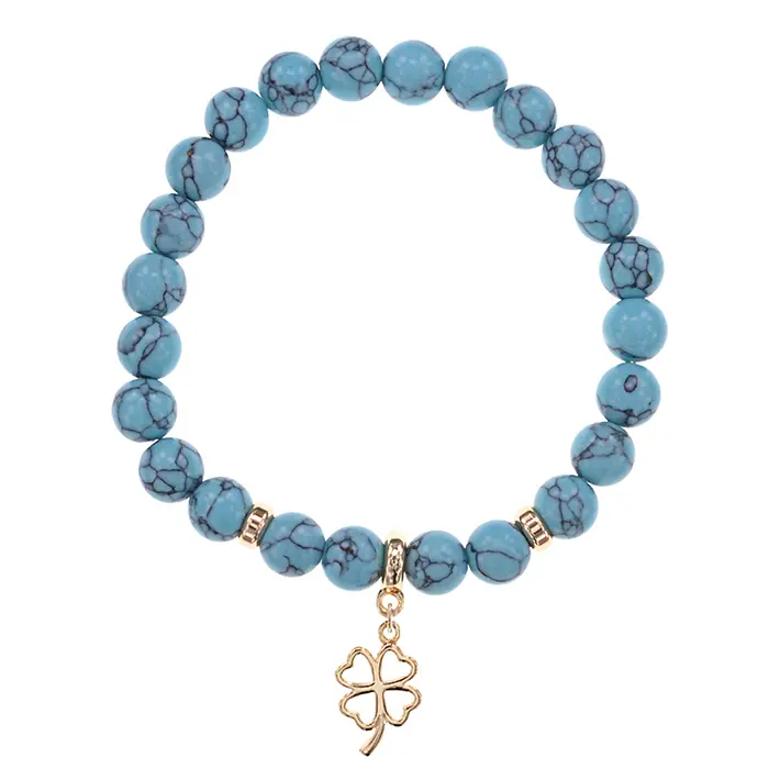 Браслет Клевер (удача, везение) синт.камень Бирюза 8мм BS-CR-0725