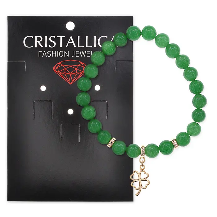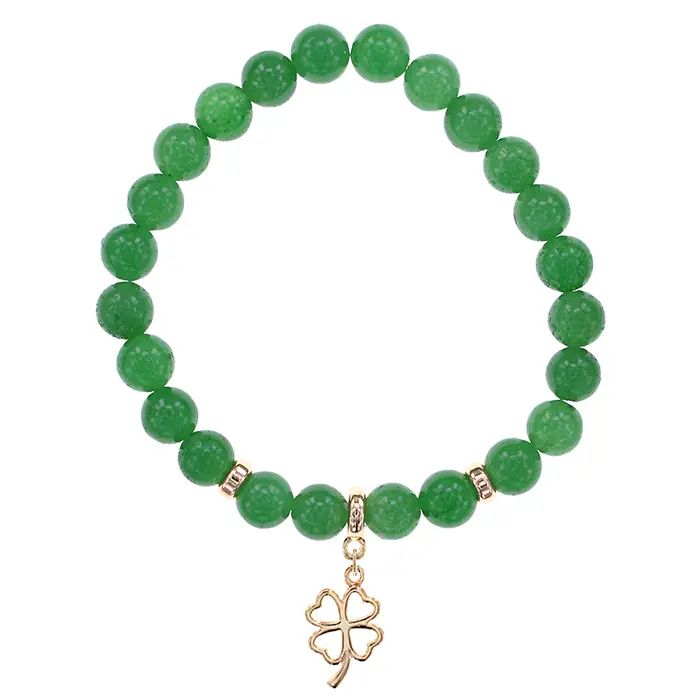 Браслет Клевер (удача, везение) нат.камень Нефрит 8мм BS-CR-0733