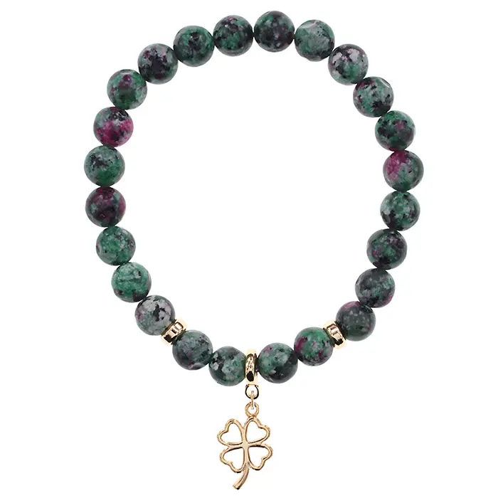 Браслет Клевер (удача, везение) синт.камень Цоизит 8мм BS-CR-0742