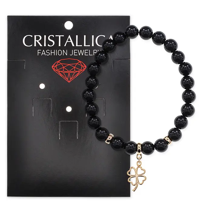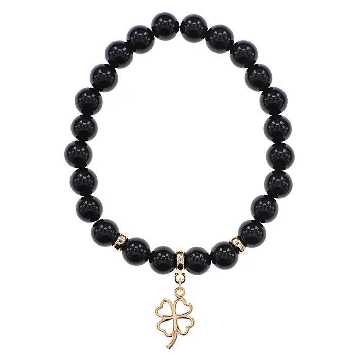 Браслет Клевер (удача, везение) нат.камень Черный агат 8мм BS-CR-0743