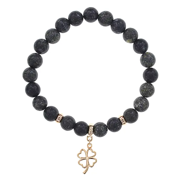 Браслет из натурального камня змеевик с подвеской в виде клевера.