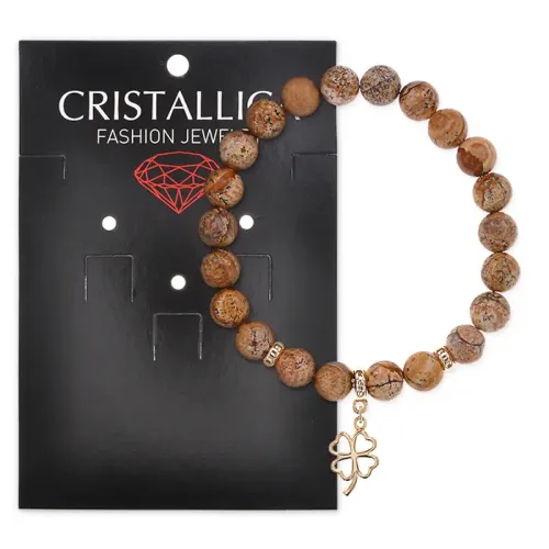 Браслет Клевер (удача, везение) нат.камень Песочная яшма 8мм BS-CR-0750