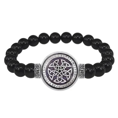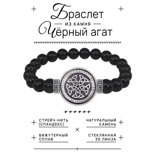 Браслет из черного агата Кельтская пентаграмма BSBA-158