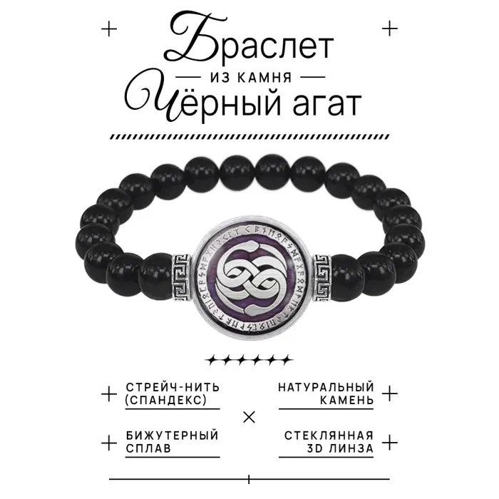 Браслет из черного агата Уроборос BSBA-169
