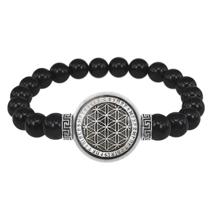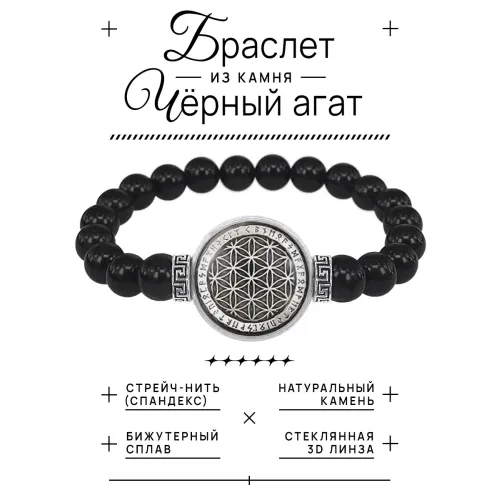 Браслет из черного агата Цветок жизни BSBA-177